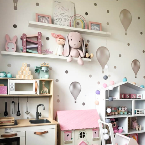 INSPIO Falmatrica gyerekszobába - Krémszínű hőlégballonok (3673bf)