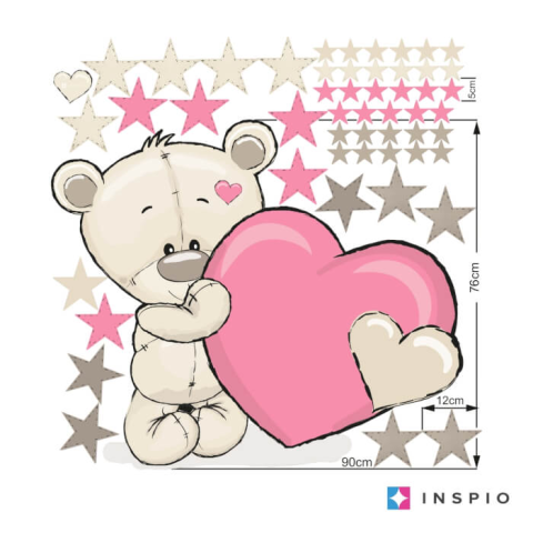 INSPIO Falmatrica kislánynak - Maci szivecskékkel és névvel (9508f) tapéta, díszléc és más dekoráció 1 kép