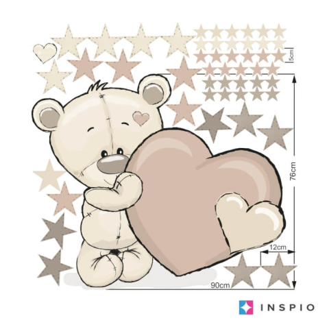 INSPIO Falmatrica - Maci semleges színekben fiúknak és lányoknak (9507f) tapéta, díszléc és más dekoráció 1 kép