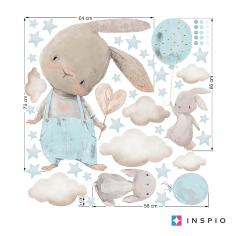 1 kép INSPIO Falmatricák gyerekszobába - Nyuszik világoskék színben lufikkal (9516f)