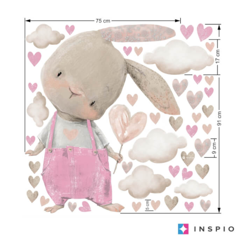 INSPIO Falmatricák - Nyuszi rózsaszín szivecskékkel (9490f) tapéta, díszléc és más dekoráció 1 kép