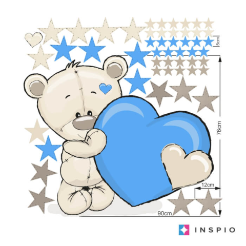 INSPIO Fiús falmatrica - Maci kék csillagokkal és szívecskével (9505f) tapéta, díszléc és más dekoráció 1 kép