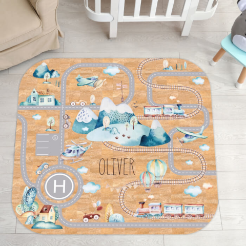 1 kép INSPIO Gyerek, parafaszőnyeg gyerekeknek utakkal, autókkal, névvel (KOB008)