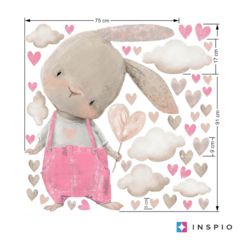 INSPIO Lányos falmatricák - Rózsaszín akvarell nyuszi (9492f) tapéta, díszléc és más dekoráció 1 kép