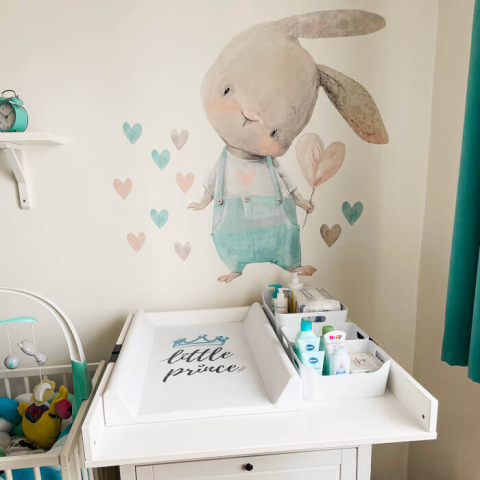 1 kép INSPIO Öntapadós falmatrica gyerekszobába - Akvarell nyuszi szívecskével N.1. (9197f)