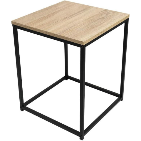 Intenso Loft kisméretű kisasztal 40 x 40 cm-es asztal felülettel, porfestett rozsdamentes fekete acél lábakkal. Használható mint dohányzóasztal vagy éjjeliszekrény. Modern, letisztult formatervezés, masszív acél váz és természetes tölgy árnyalatú asztalla