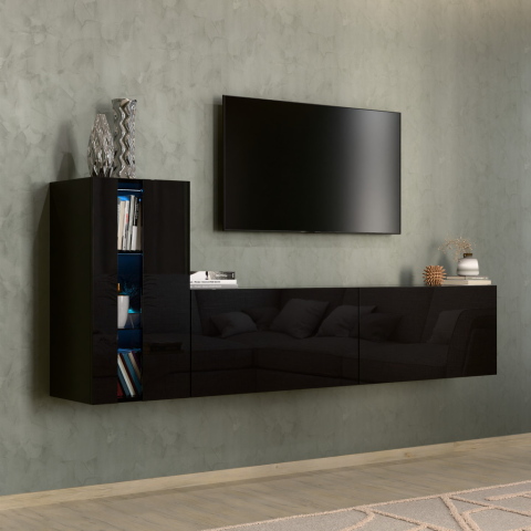 Intenso Concept-11, 3 elemes falra szerelhető nappali szekrénysor. Prémium minőségű bútorlapok, minden oldalon egységesen magasfényű fekete felülettel. A készlet számos tároló egységet tartalmaz, tökéletesen illeszkedik bármely nappali belső terébe. 15 mm