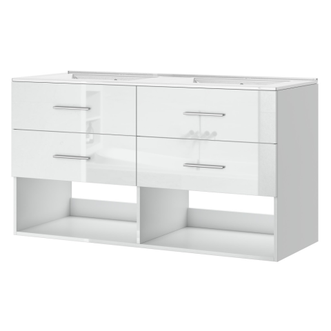 1 kép Intenso Fiókos kétszemélyes fürdőszobaszekrény mosdókagylóval Intenso Verso-Duo - 120 cm (magasfényű fehér)