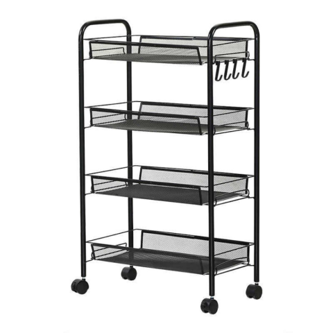 Intenso Home 4 szintes kerekes polc. Univerzális megoldás akár konyhába, mosókonyhába, gyerekszobába vagy bármilyen helyiségbe ahol egy könnyen mozgatható tároló polc praktikus megoldást jelent. A felső foganytú segítségével ergonómikus, könnyen mozgathat
