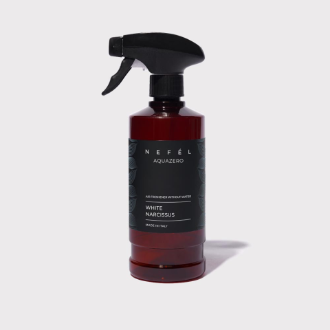 Nefél Aquazero koncentrált vízmentes illatosító permet - Fehér Nárcisz illatú 480 ml-es kiszerelésű. Gondosan válogatott összetevőivel kellemes hosszantartó illatot biztosít a környezetben és a felületeken. INTENZÍVEN ILLATOSÍTOTT NEM NEDVESÍTI BE A F