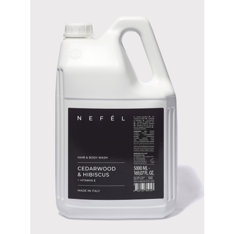 Nefél Cédrusfa és hibiszkusz illatú sampon és tusfürdő utántöltő 5000 ml-es kannában a 480 ml-es kiszerelésű pumpás adagolóflakonhoz. Gondosan válogatott összetevőivel a bőrt puhává és bársonyossá teszi. Nefél Cédrusfa és hibiszkusz illatú sampon és tu