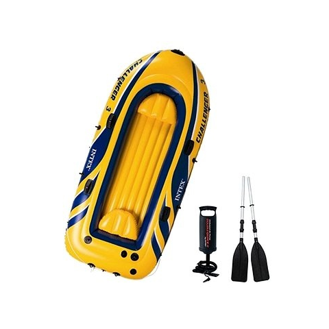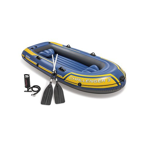 Felfújható gumicsónak 3 személyes - szabadidős, terhelhetősége 255 kg, anyaga PVC, pumpa, evező és felfújható ülés a felszerelésben, mérete 41 × 61 cm (Sz×H), tömege 12,9 kg A Challenger 3 felfújható csónak evezővel és gazdag felszereléssel örömmel veszi a vizet.Az Intex Challenger 3 felfújható gumicsónakja garantáltan gondoskodik a vízi túrák élményeiről. Magaddal vihete
