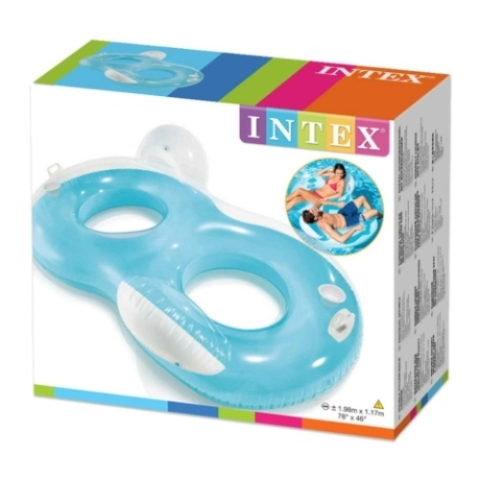 1 kép Intex : Dupla háttámlás kerek matrac kék színben 198×117 cm /56800/