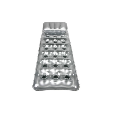 Felfújható színes poharas strand matrac 188cm x 71 cm-es méretben, fejtámlával. A színek a készlettől függően változnak. Nélkülözhetetlen kellék a strandokon, vagy akár a kertben. Kényelmes