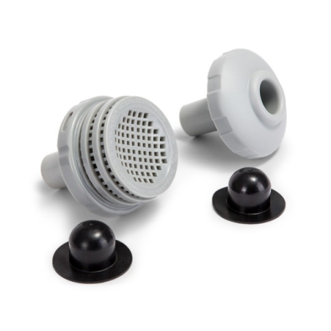INTEX Jet csatlakozó készlet, falátvezetők szett, befúvó és szívó elem Ez a készlet egy szívó- és nyomószűrőből áll, amely biztosítja az Intex cső alakú medence szűrőrendszerének egyszerű összeszerelését . Fekete dugós kupak is mellékelve van, ha sze