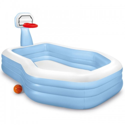Családi medence, kosárlabda palánkkal, gyűrűvel és labdával.A medencét egyszerre több gyerek is tudja használni, kiváló szórakozást nyújt akár az egész család számára. Könnyen felállítható, a medencét 32 cm-ig lehet vízzel feltölteni, amely 682 l. Erős vi