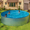 Szinterezett fémvázas medencetest, vastag és extra tartós 3 rétegű szálerősített fóliával, 5,6 m³/h teljesítményű papírszűrős vízforgatóval. Az erős PVC medence testet csőváz tartja, amelyek a testen kialakított füleken keresztül tolva merevítik a szerkez