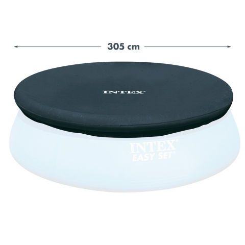 INTEX puhafalú medence védőtakaró 305cm Termék leírása A termék jó INTEX és BESTWAY medencékhet is! A termék 305cm átmérőjű földfeletti puhafalú kerti medencéhez van méretezve!!! - Zsinóros rögzítés - Leeresztő lyukak, hogy az összegyűlő eső ne ránts