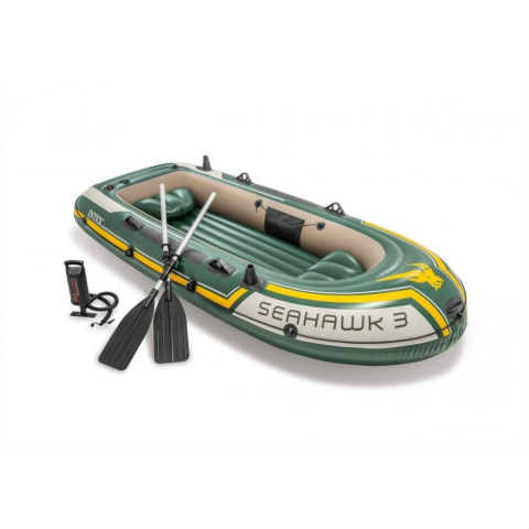 Kiemelkedően jó minőségű 3 személyes Intex gumicsónak, extra erős PVC anyagból. A csónaktest 3 légkamrás, 4 evező lapátnak van helye, a csónak végébe opcionálisan rögzíthető motor. Akár horgászat, akár pihenés vagy egy tavi evezéshez, a Seahawk ™ 3 fe