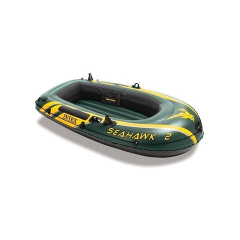 Felfújható gumicsónak 2 személyes - szabadidős, csónakmotorral használható, terhelhetősége 240 kg, anyaga PVC, ragasztó a felszerelésben, mérete 41 × 114 × 236 cm (Ma×Sz×H), tömege 8,72 kg A kiváló minőségű és tartós csónak evezővel és szivattyúval van ellátva, különösen a halászok vagy a gyermekes családok számára.Az Intex Seahawk 2 minőségi, felfújható csónak gondoskodik az igazi vízi