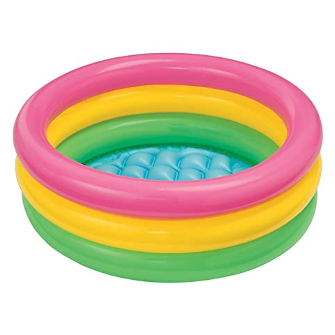 Gyerekmedence - 1 éves kortól ajánlott, 28 l űrtartalom, kerek forma, felfújható, fehér, zöld, sárga és rózsaszín kivitel, méretei 22 × 61 × 61 cm (ma × szé × h) Az Intex felfújható, háromszínű medencét a legkisebb gyermekek számára tervezték. A kellemes és vidám pasztell színek biztosan elnyerik a gyermekek tetszését, és a lehető legtöbbet fogják jól érezni m