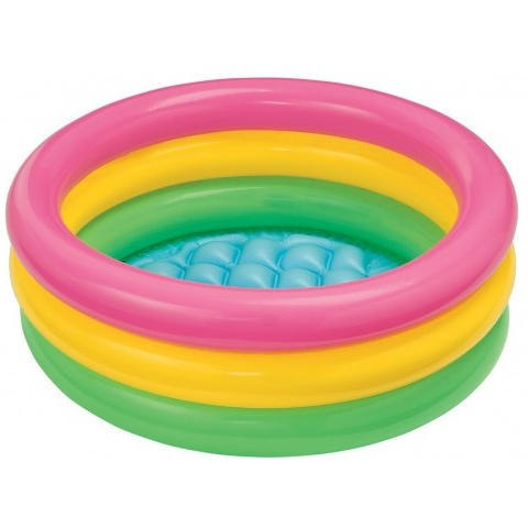 Intex Sunset Glow baby medence Sunset Glow felfújható babamedence 1–3 éves gyermekek számára, puha felfújható padlóval. Az oldalfal három különböző színű gyűrűből áll. Gyártó: Intex Gyártó cikkszáma: 58924 Mérete: 86 x 25 cm Vízkapacitás: 15 cm Dobo