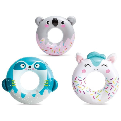 Úszógumi - felfújható, vízbe, gyerekeknek, állatka formájú, többszínű kivitel, 96 kg teherbírás, anyaga vinyl, 76 cm átmérő, javítókészlet a csomagban - 1 db a csomagban , az egyes termékváltozatok közül nem lehetséges választani Üdvözlendő kiegészítés a kis úszók szórakozásához, akár a strandon, akár a medencében a kertben. Az állat alakú úszógumi biztonságos vinilből készült. Az Intex termékek megfelelnek a legmagasabb bizto