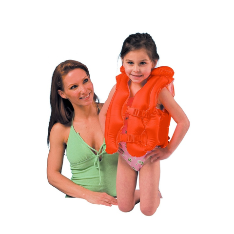 Felfújható úszómellény, elöl két rögzítő csattal, galléros, három légkamrás. Ajánlott életkor / súlyhatár: 3-6 év, 18-30 kg testsúlyúak részére. Nem életmentő eszköz!