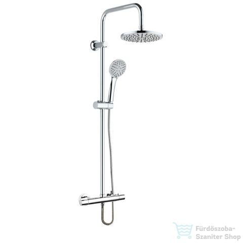 Termosztátos csaptelep Termosztát 38°C-on hőmérsékletzárral 20 cm átmérőjű fejzuhany 4 funkciós kézizuhany Rozsdamentes acél rúd 150 cm-es fém gégecső