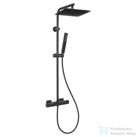 Termosztát 38°C hőmérsékletzárral 25x25 cm-es szögletes, slim ABS fejzuhany Anti-Calc rendszer - vízkő könnyen eltávolítható 1 funkciós kézizuhany, ABS 150 cm-es PVC gégecső