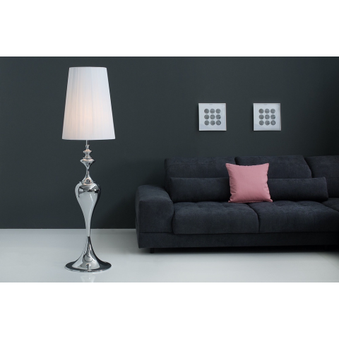 Állólámpa LUCY fehér 160 cm A LUCY állólámpa kialakítása el fogja Önt bűvölni. Az anyagok és az alakzatok kölcsönhatása hangsúlyozza az elegáns dizájnt, fényes kivitelezésű, barokk beütéssel. Ez az állólámpa nemcsak a dizájnnal, hanem az általa biztosíto