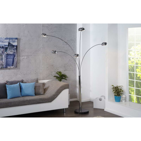 Stílusos állólámpa Qualle króm A stílusos Qualle króm kivitelezésű állólámpa különféle bútor- és életmód magazinok prezentációiból lehet ismerős. A Qualle 5 forgatható lámpából áll, amelyek lehetőséget nyújtanak arra, hogy azokat igényeinek megfelelően á