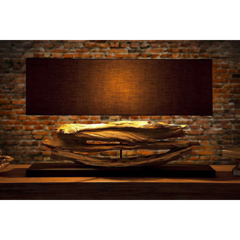 Asztali lámpa uszadékfából Lake fekete Az impozáns Lake asztali lámpa a legyező stílusú fa lábával garantálja a rusztikus hangulatot az otthonában. Mindegyik lámpa kézzel készült! A minőségi anyagból készült, nagy négyzet alakú árnyékoló kellemes hangulat