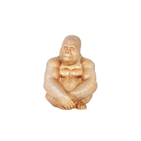Dekoráció Gorilla 43 cm arany Az eredeti Gorilla dekoráció nagyszerű kiegészítője lesz bármilyen belső térnek. Alumíniumötvözetből kézzel készült, arany dizájnnal, és első pillantásra lenyűgözi időtálló dizájnjával. Díszítse környezetét ezzel a dekoratív