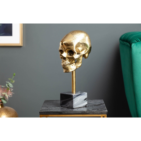 Dekoratív elem Koponya 35 cm arany A lenyűgöző dekoráció minden belső teret eredeti megjelenésével díszít, és felkelti barátai és látogatói figyelmét. A dekoráció érdekessége a szürke márvány alapja, amely bármilyen felületen biztonságot és stabilitást bi