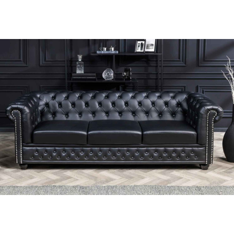 INVICTA Design 3 személyes ülőgarnitúra Chesterfield 205 cm fekete bútor termékleírás