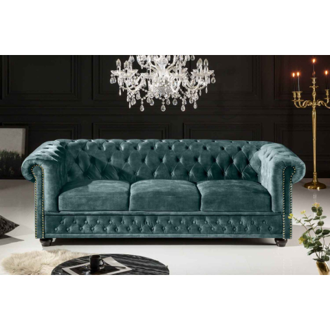 INVICTA Design 3 személyes ülőgarnitúra Chesterfield 205 cm petrol bársony bútor termékleírás