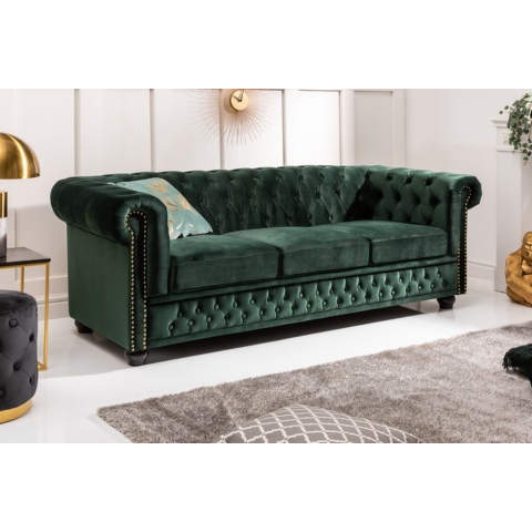 Teljes INVICTA Design 3-személyes ülőgarnitúra Chesterfield 205 cm smaragdzöld bársony termékleírás
