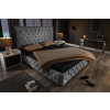 Design ágy Laney 180 x 200 cm szürke szövet A népszerű Chesterfield foltvarrással díszített, pompás Laney franciaágy mindenki figyelmét felkelti. A kiváló minőségű szövet huzat nemes jelleget kölcsönöz neki. A fekete fa lábak harmonikus kontrasztot alkotn