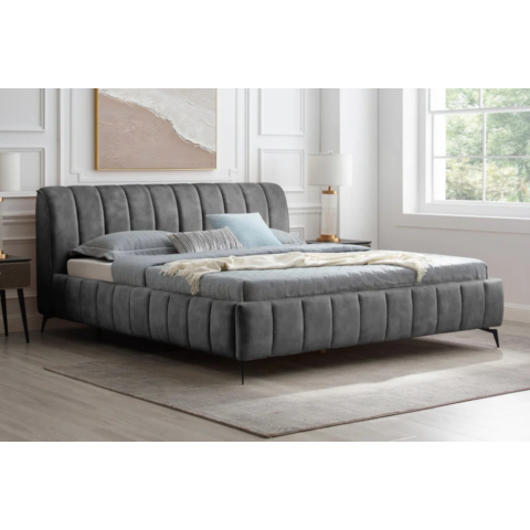Design ágy Rotterdam 180 x 200 cm szürke bársony A stílusos Rotterdam ágy nem csak álom luxus. Az ágy abszolút vonzereje kétségtelenül a függőleges díszítővarrás. A fekete fém lábak harmonikus kontrasztot teremtenek a szürke burkolattal, tökéletes stabili