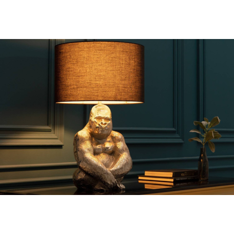Design asztali lámpa Gorilla 60 cm fekete-ezüst Nem hagyományos, időtálló, eredeti alappal. Az elegáns Gorilla asztali lámpa garantáltan kellemes hangulatot varázsol otthonába. A lámpa önmagában eredeti. Egy nagy, kerek fekete árnyalat ezüst alapon áll, f