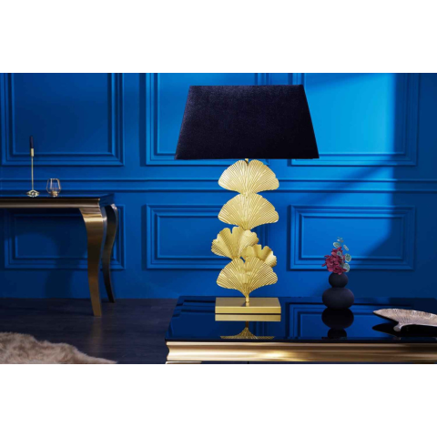 Design asztali lámpa Rashid 78 cm fekete-arany Modern, szép és stílusos. A Rashid asztali lámpát ezek a tulajdonságok jellemzik. A lámpa önmagában eredeti. Egy nagy fekete árnyalat áll egy ginkgo alakú alapon. A sötét árnyalat lehetővé teszi a fény enyhe