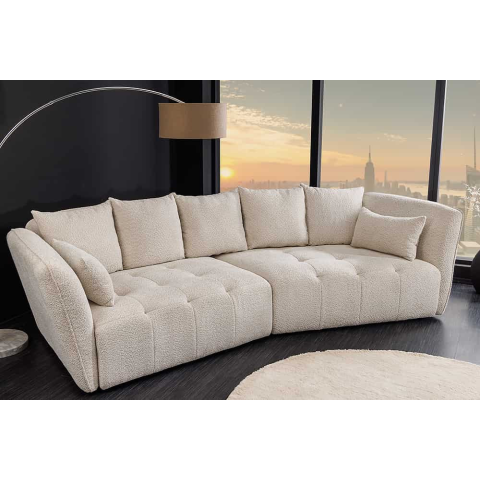 Design kanapé Bellaria 295 cm XL bézs bouclé Luxus és kényelem egyben a BELLARIA Big Sofa-val! A BELLARIA kanapéval egy stílusos és impozáns bútordarab költözik otthonodba. A puha, bézs bouclé szövet elegáns megjelenést kölcsönöz az XL méretű kanapénak,