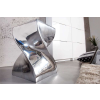 Design lerakóasztal Spin 45 cm ezüst A Spin lerakóasztal egy kézzel készített, egyedi darab, amely magas minőségű ezüst színű fém–aluminium ötvözetből készült. Különleges megjelenését az aszimmetrikus, homokórára emlékeztető forma és a figyelemfelkeltő,