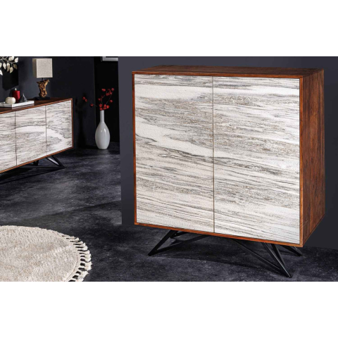 Teljes INVICTA Design magas komód Quillon 120 cm szürke fehér természetes kőből termékleírás