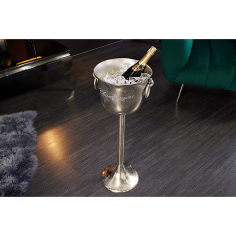 Design pezsgő hűtő Champagne 80 cm ezüst A Champagne design pezsgő hűtő praktikus és szemet gyönyörködtető kiegészítője lesz otthonának. Alumíniumötvözetből kézzel készített ezüst dizájnnal, és első pillantásra lenyűgözi időtálló dizájnjával. Élvezze a pe