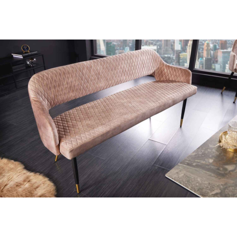 Design ülőpad Laney 162 cm pezsgő bársony Olyan stílusos darabot keresel, amely különlegessé teszi a belső teret és egyben helyet biztosít számodra? A Laney a tökéletes választás az Ön számára. A bájos bársonyhuzat jellegzetes dekoratív varrással és az ar