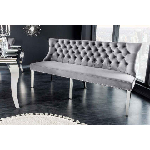 Design ülőpad Queen Levia fej 164 cm szürke bársony A szürke színű design-pad Queen első pillantásra lenyűgöz, és eredetiséget és stílust kölcsönöz a belső térnek. Kellemes kárpitozás és Chesterfield mintás varrások stílusos gombokkal, antik megjelenést k