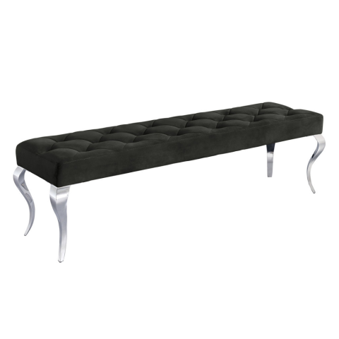 Rococo dizájnos ülőpad, 170 cm, fekete A Rococo dizájnos pad az Ön stílusának kifejezése lesz. Az extravagáns bútor a minőségi anyagok kombinációja. Az ülőrész huzat finom bársonyból készült a népszerű Chesterfield mintával kiegészítve. Az ívelt lábak fén