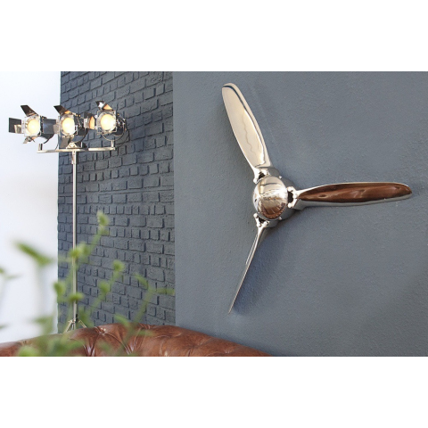 Fali dekoráció Wade III 90 cm ezüst A kalandot és a szabadságot jelképező nagyméretű, kihagyhatatlan faldísz – pontosan ez a Wade légcsavar szellemisége. Az alumíniumötvözet másolata egy tényleges repülőgép-alkatrész pontos másolata. A precíz kézi munkán